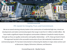 72%itc has been recognized as one of canada’s best managed companies (platinum member). itc has been instrumental in enhancing the skylines in major urban centres such as vancouver, calgary, edmonton, kelowna, and nanaimo.