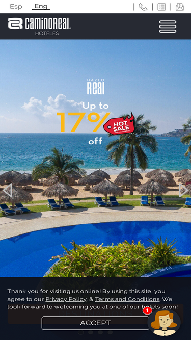 100%Conozca nuestras políticas de reservación, términos y condiciones, tarifas y el programa de lealtad Real Loyalty en los Hoteles Grupo Camino Real.