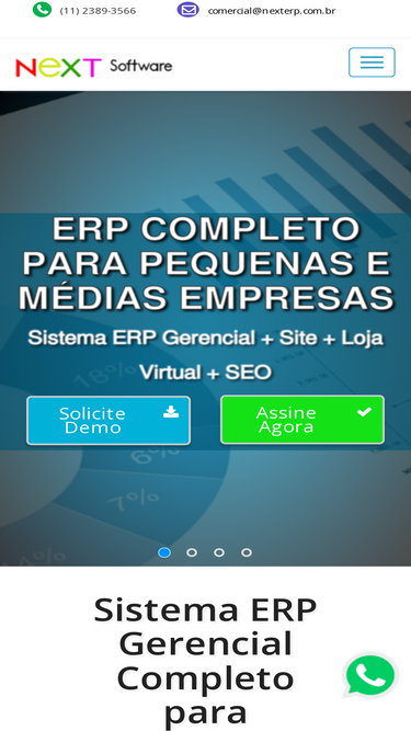 100%O NeXT ERP é um Sistema Gerencial ERP Completo com Emissão de Nota Fiscal Eletrônica NF-e, Nota Fiscal de Serviço NFS-e, Cupom Fiscal NFC-e, SAT Fiscal e Gestão Financeira. Saiba mais.