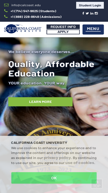 89%The online degree programs offered by California Coast University have been designed to allow students to begin at any time and proceed as rapidly or as slowly as their own time and ability permit.
