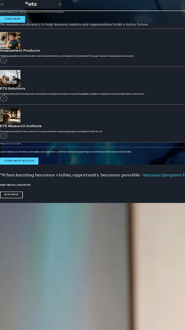98%在ets,我们的评估,学会解答和作早期工作在研究帮助学生、教育家和雇主在他们的道路清楚地看下一个步骤到新的可能性。