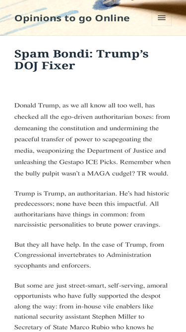 75%opinionstogoonline.com brings the unique perspective and provocative opinions of joe o'neill to the internet. it also provides an interactive outlet for those who want to share this forum -- from politics and foreign policy to american culture and media criticism -- with others who also value spirited public discourse in a democracy.