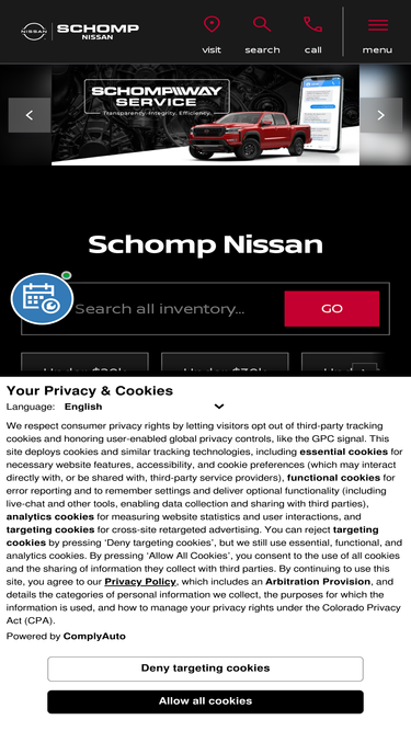 95%Schomp Nissan is a dealership in Littleton, CO with a large inventory of vehicles for sale. Check out our inventory or contact us for more information!