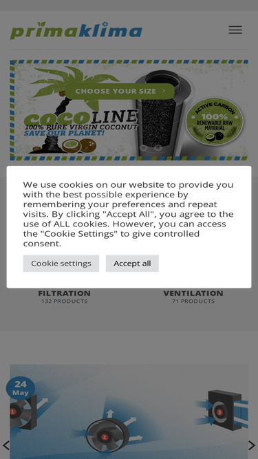 89%Activated carbon filter for effective particle adsorption and odour removal with improved patented design. Flange 315 mm, Max. Airflow: 4700 m³/h