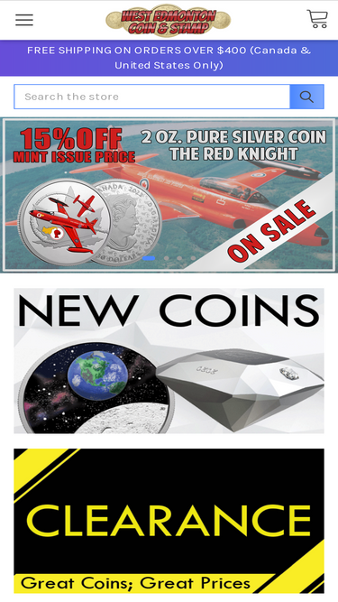 86%west edmonton coin and stamp sells fine gold and silver coins at royal canadian mint issue price.