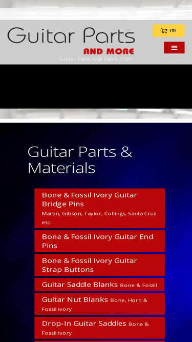 100%supplier of imitation ivory, bone and fossil guitar bridge pins, nuts, and saddles. cue stick phenolic, bone, horn, imitation ivory game call, knife scales, and gun grips. violin parts.