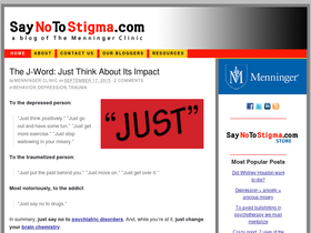 64%the blog saynotostigma.com offers an online forum for discussing and combating the stigma surrounding mental illness and for highlighting key issues related to mental health research, treatment and education for consumers and professionals alike.
