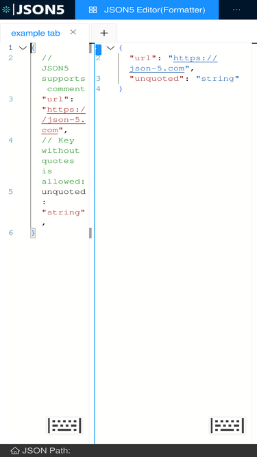 55%looking for a vs code-like json5 editor that offers an error-free editing experience? look no further than our json editor, which is designed to be compatible with both json and json5. with our editor, you can easily create, edit, and manage your json files with ease, all while enjoying the familiar and intuitive interface of vs code.