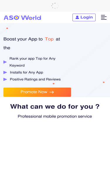 94%ASOWorld offers expert app promotion services to boost your app's downloads and visibility. Achieve maximum growth with our tailored ASO & UA strategies.