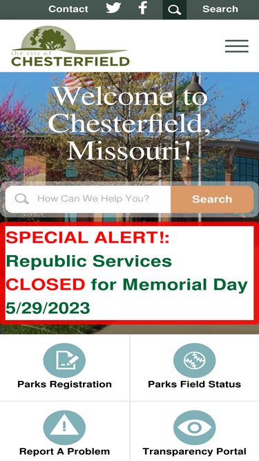 87%The Parks, Recreation and Arts Department is nationally accredited and we have four areas of expertise to serve the residents and guests of Chesterfield. These are Parks, Recreation, Arts and Entertainment, and Sports and Wellness.