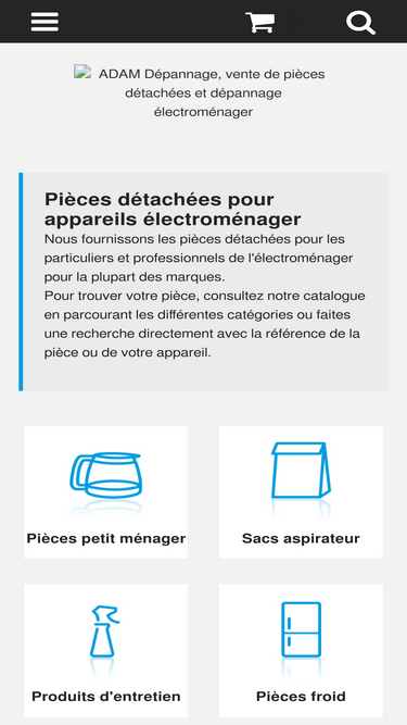 adam dépannage : vente de pièces détachées et accessoires électroménager. service de réparation agréé en atelier ou à domicile sur bordeaux, gironde (33) et cub. téléphone : 05.56.07.35.85