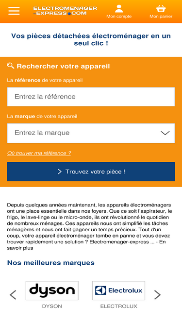 96%Spécialiste pièces détachées pour électroménager depuis 1981. Lave-vaisselle, lave-linge, réfrigérateur, four... : plus de 200 000 références, toutes marques. Livraison en 24h, conseils et tutoriels gratuits.