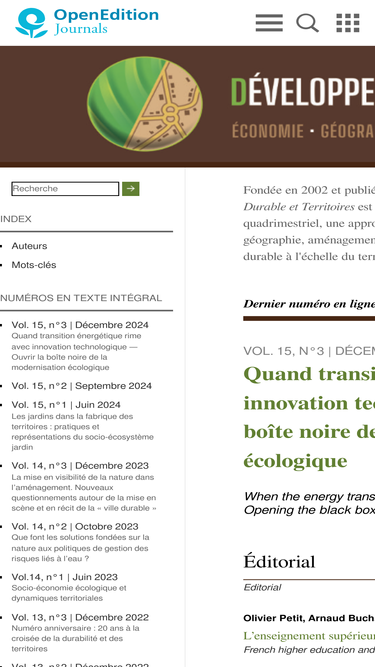100%La revue Développement Durable & Territoires est indexée dans différentes bases de données nationales et internationales. Elle est également classée dans des listes de revues scientifiques élaborée...