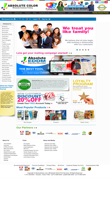 99%online printer - absolutecolor.com is an online wholesale printing company providing services throughout the united states. superior quality and service!