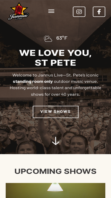 87%Jannus Live is an iconic concert venue located in Downtown St. Petersburg, Florida. Jannus Live hosts an eclectic array of touring talent, DJs, and more.