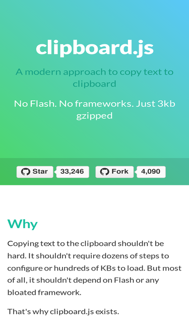 93%A modern approach to copy text to clipboard. No Flash. No frameworks. Just 3kb gzipped