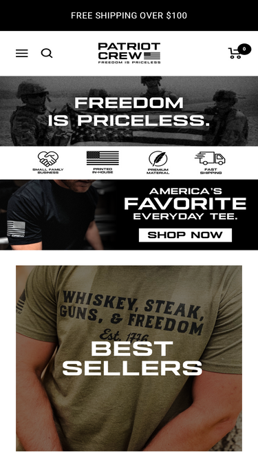 100%A brand inspired by American values making shirts, hoodies, hats here in the USA. Our patriotic shirts have been American made since day one.