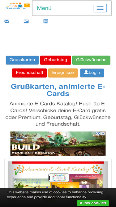 31%kostenlose elektronische grusskarten - e-cards versenden. z.b. liebe, sehnsucht, romantik, geburtstag oder danke schön. auch animierte grusskarten und interaktive flash e-cards.