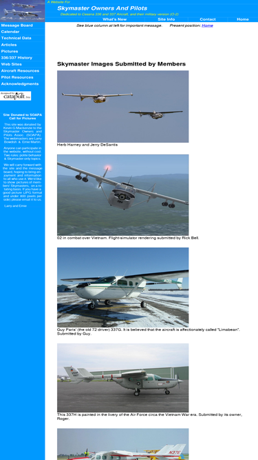 82%this site is devoted to the cessna skymaster center-line thrust twin engine aircraft, model 336, 337, and o-2. it is designed to meet the needs of skymaster owners, pilots and those interested in the airplane. it is a non-profit site.