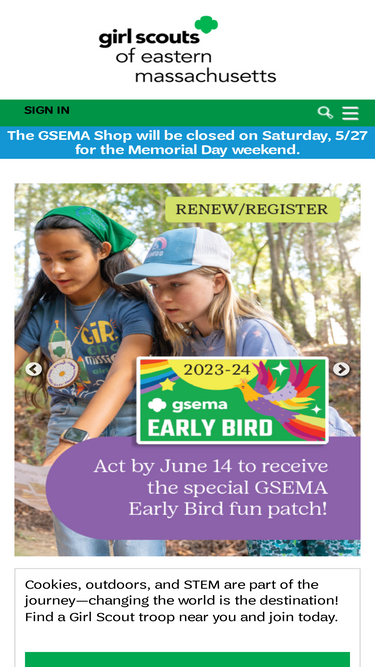 79%Girl Scouts of Eastern Massachusetts—helping over 19,000 girls become leaders of courage, confidence and character who make the world a better place. Join, volunteer, or renew your membership today.