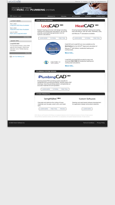 100%design software for hvac/p. loopcad for radiant heating, heatcad for heating load, and plumbingcad for plumbing takeoffs. supports manual j, csa f280 and ashrae.