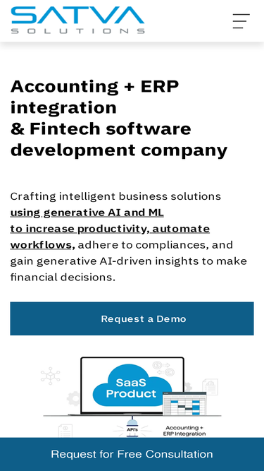We, Satva Solutions, Help SaaS companies worldwide craft intelligent businesses using generative AI and ML solutions with custom Accounting + ERP integration services. Backed by experienced fintech software developers.