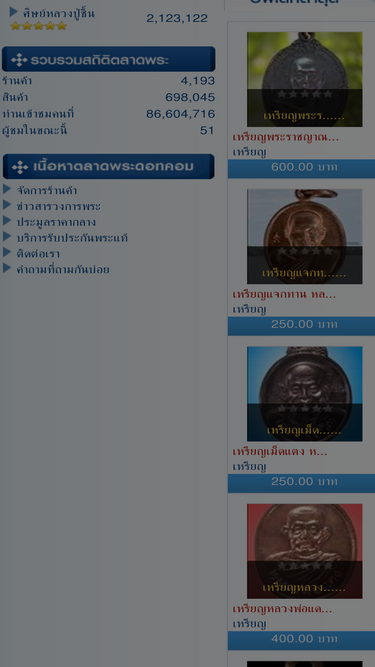 80%ร้านพระเครื่องมงคล พระเครื่องในร้านส่วนใหญ่ล้วนแต่เป็น พระเครื่องทั้วไป ทั้ง เหรียญคณาจารย์ต่าง ๆ เหรียญหล่อ รูปหล่อ พระกริ่ง เนื้อดิน เนื้อชินเงิน เนื้อชินอุทุมพร เนื้อผง พระปิดตา พระชุดหลวงปู่ทวด พระชุดหลวงพ่อวัดโสธร พระชุดเจ้าคุณนรฯและหลวงปู่โต๊ะ พระชุดจังหวัดนครปฐม เพชรบุรี พระชุดอาจารยฝั้นและชุดภาคอีสานต่าง ๆ พระประจำจังหวัดต่าง ๆ อีกมากมาย ฯลฯ และแน่นอนครับพระทุกองค์ประกันความแท้ดูง่าย สนใจรายการไหนติดต่อทางร้านได้ ร้านของเราเป็นสมาชิก ของทาง Tarad.com ดังนั้นมั่นใจได้เลยครับว่าถ้าเช่าบูชาวัตถุมงคลจากทางร้านของเรา ท่านจะได้วัตถุมงคลคุณภาพ และจัดส่งอย่างรวดเร็ว ...ท่านไม่จำเป็นต้องดู พระเป็น แต่ท่านสามารถเช่าบูชาพระ แท้ได้จากบ้านท่านเอง... www.mongkol99.com www.mongkol99.tarad.com ร้านพระเครื่องมงคล ยินดีบริการ พระแท้ พระสวย และพระดูง่าย ส่งถึงบ้านท่าน พระทุกองค์แท้ตามมาตราฐานสากล และมาตรฐาน ชมรมพระเครื่องท่าพระจันทร์ คุณจึงมั่นใจและสบายใจได้ 100 % ว่าจะได้วัตถุมงคลที่แท้และมีคุณภาพ ร้านพระเครื่องมงคล ยินดีบริการ พระแท้ พระสวย และพระดูง่าย ส่งถึงบ้านท่าน พระทุกองค์แท้ตามมาตราฐานสากล และมาตรฐาน ชมรมพระเครื่องท่าพระจันทร์ คุณจึงมั่นใจและสบายใจได้ 100 % ว่าจะได้วัตถุมงคลที่แท้และมีคุณภาพ สวัสดีครับผู้ที่ชื่นชอบการอนุรักษ์พระเครื่องพระบูชาทุกๆ ท่าน ทางร้านขอรับใช้ทุกๆท่านด้วยความยินดี พระเครื่องในร้านมีทั้ง เหรียญคณาจารย์ต่าง ๆ เหรียญหล่อ รูปหล่อ พระกริ่ง เนื้อดิน เนื้อชินเงิน เนื้อชินอุทุมพร เนื้อผง พระปิดตา อาทิ พระลำพูน หลวงพ่อปาน หลวงพ่อโหน่ง หลวงปู่ทวด หลวงพ่อโสธร เจ้าคุณนรรัตนฯ หลวงปู่โต๊ะ หลวงพ่อโบสถ์น้อย หลวงพ่อเงิน-พ่อแช่ม หลวงพ่อน้อย หลวงพ่อแช่มวัดฉลอง หลวงพ่อลี หลวงพ่อเกษม หลวงปู่แหวน หลวงพ่อแดง หลวงพ่อเจริญ หลวงพ่อโอภาสี หลวงพ่อวัดปากน้ำ พระอาจารย์มั่น-เสาร์ หลวงพ่อฝั้น หลวงพ่อฝาง หลวงพ่อคูณ หลวงพ่อก้อน พระชุดจังหวัดต่าง ๆ ทุกจังหวัด ทุกภาค เครื่องรางของขลัง และอื่น ๆ อีกมากมาย และแน่นอนครับพระทุกองค์ประกันความแท้ตามมาตรฐานสากล ร้านของเราเป็นสมาชิก ของทาง Tarad.com ดังนั้นมั่นใจได้เลยครับว่าถ้าเช่าบูชาวัตถุมงคลจากทางร้านของเรา ท่านจะได้พระเครื่อง พระแท้ มีคุณภาพ เป็นพระแท้ตาม ตามมาตรฐานสากล และตามมาตรฐานชมรมพระเครื่องท่าพระจันทร์ และจัดส่ง