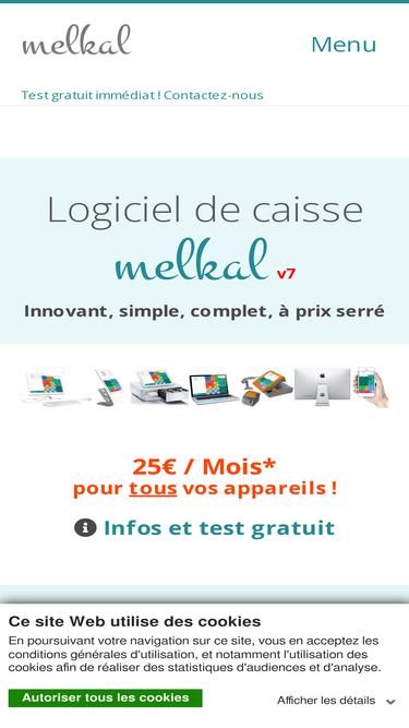 100%melkal est un logiciel de caisse simple et exhaustif. il fonctionne à la fois sur téléphone, tablette, et ordinateur.