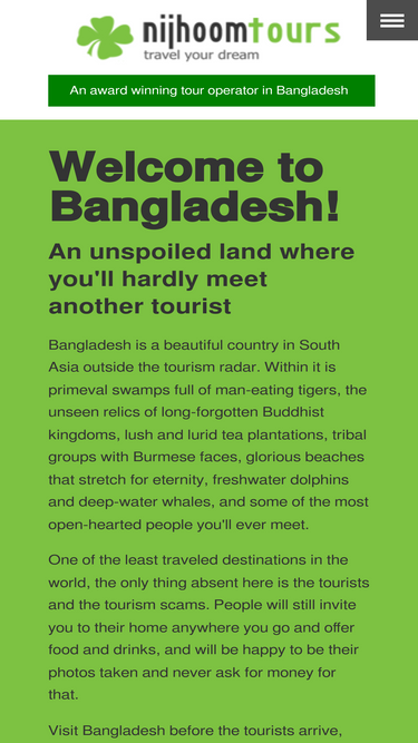 100%1-28 days tours in Bangladesh with a tiny group of 2-5 travelers only.