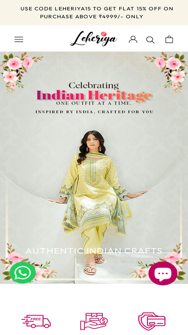 69%Our Story: Empowering Artisans, Enriching Lives Welcome to Leheriya, where every purchase tells a story of empowerment, tradition, and compassion. At Leheriya, we believe in more than just fashion; we believe in the power of human connection and the preservation of cultural heritage. Our journey began with a simple yet