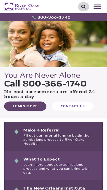 98%help is just a phone call away. located in the suburbs of new orleans, our psychiatric facility treats adolescents and adults experiencing a variety of behavioral health issues. learn more at riveroakshospital.com.