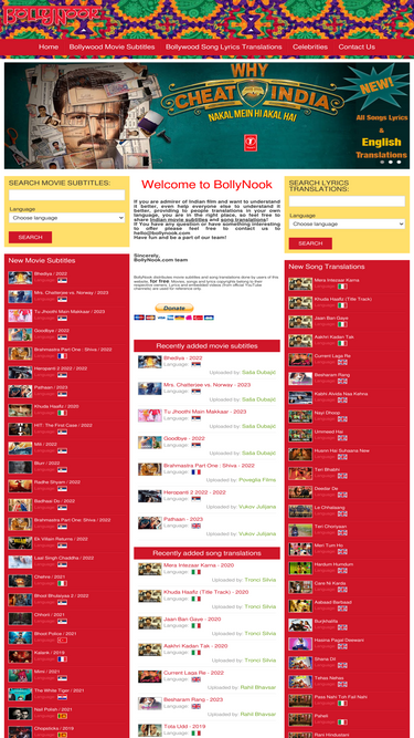 85%bollynook- bollywood nook- movies subtitles & songs lyrics translations, in numerous languages!
