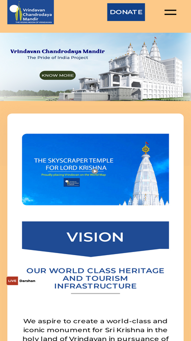 98%Vrindavan Chandrodaya Mandir is an under-construction temple in Vrindavan, India. It is planned to be the world's tallest religious monument. It is a tribute to the Hindu god Krishna. The temple will be 700 feet (210 meters) tall and will have a built-up area of 540,000 square feet