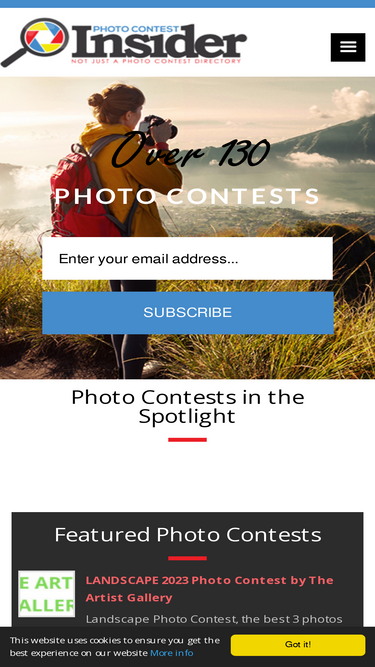 95%Thank you for visiting PhotoContestInsider.com (the “Site”, “PCI”), which is owned and operated by PhotoContestInsider.com. PhotoContestInsider.com takes privacy and transparency very seriously. Please read the following PhotoContestInsider.com Privacy Policy (“Privacy Policy”) to understand how your personal information will be collected and treated as you make full use of the Site. Your Acceptance of this Privacy [&hellip