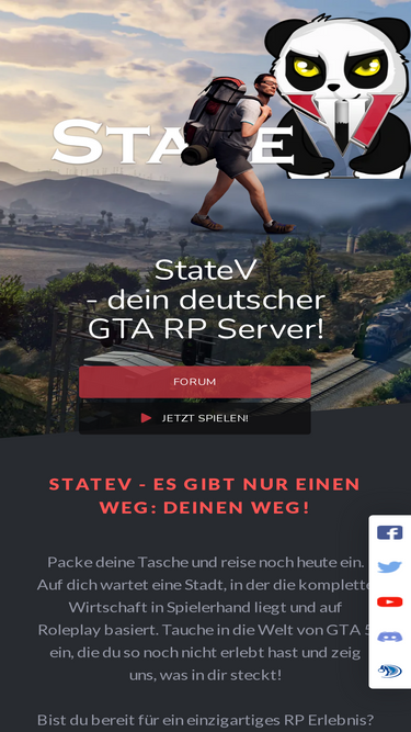 100%statev - deutscher gta 5 roleplay (rp) server basierend auf dem gta v alt:v client, mit eigenem ingame voice und einer durch spielerhand kontrollierten wirtschaft.