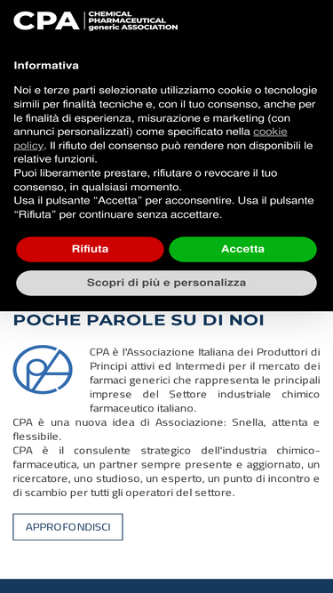 68%CPA è l'Associazione Italiana dei Produttori di Principi attivi ed Intermedi per il mercato dei farmaci generici che rappresenta le principali imprese del Settore industriale chimico farmaceutico italiano