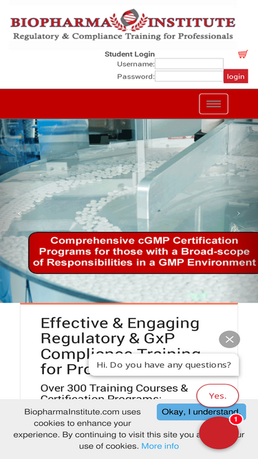 89%This free online GMP training course is designed to demonstrate the quality of Biopharma Institute's training and LMS.The cGMP: Introduction to Good Manufacturing Practice, An Abridged Course is a shortened training program used primarily for demonstration purposes only. The full length course inclu ...