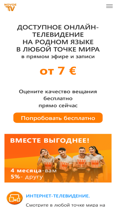 78%лучшее интернет телевидение - 10 дней бесплатно. 300+ каналов онлайн и в архиве. 80 hd каналов. архив 14 дней, видеотека больше 10000 фильмов. стоимость от 4,9 евро в месяц. адаптируется под ваш интернет – новейшие технологии вещания! смотри на смарт тв, приставке, планшете и смартфоне.