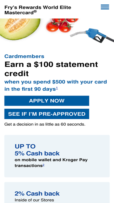 79%with the fry's rewards world elite mastercard®, you'll save on fuel and earn cash back with every eligible net purchase. learn more about the 1-2-3 rewards credit card.