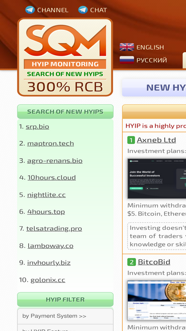 100%qualitative hyip monitoring, no listing fee. bitcoin and cryptocurrency investments. 300% rcb. search of new hyips. detailed information about hyips.