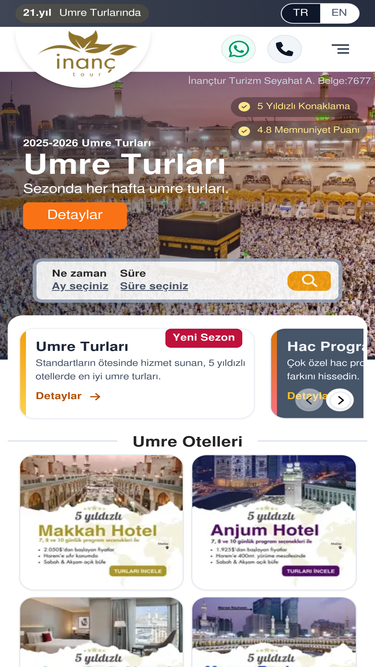 87%İnanç Turizm 5 yıldız umre turları organize eden vip turizm şirketidir.