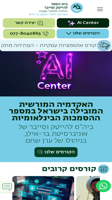 88%המכללה המובילה בישראל להכשרת מומחי CYBER. הכשרה מעשית ומקצועית עם ליווי לתעסוקה.