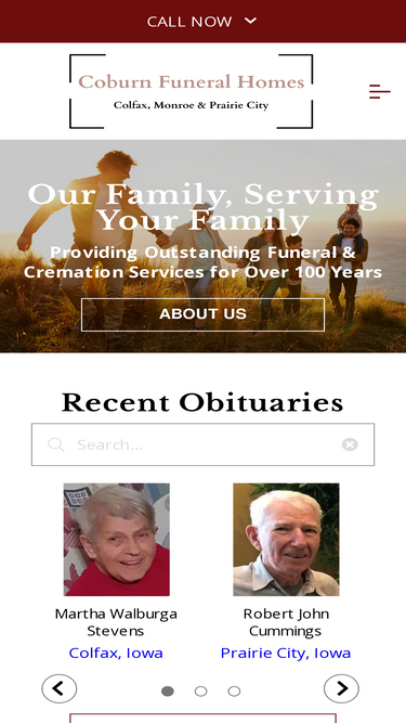 coburn funeral homes provides funeral, memorial, personalization, aftercare, pre-planning and cremation services in colfax, monroe & prairie city, ia.