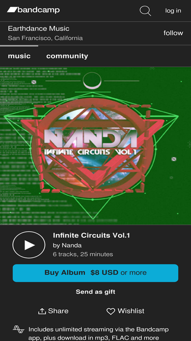 earthdance music a world of communities joining in a common goal of global unity, collaboration and evolution toward a culture of peace through music, dance, prayer, and activism. earthdance is dedicated to growing an international network of event producers and communities that connect globally and act locally to implement real solutions for peace, sustainability, and social justice. infinite circuits vol.1 by nanda, released 06 august 2012 1. orbiting the serpent 2. sojourn 3. speaker spunk 4. feel my drums 5. wormhole 6. tigerz eye on infinite circuits vol 1, nanda let’s bass and beats do most of the talking with atmospheric vocals and synthesized accents adding flavor the journey is one made up of deep spaces and psychedelic visions. mr. nicholas rider, better known as nanda to his closest peers of family members, artists, musicians, peace promoters, transcendentalists, devotees, yogis, rastas, hippies, dancers, lovers, non-haters and mischief makers, has been musically influenced from a very young age. his inspiration continues to be fueled with the complete sentiment of how music touches so many people and is motivated to spread this positive vibe through his music making. currently residing in santa cruz ca., he is busy working on future developments to dose the world with abstract tones of audio psychedelia. vast musical influences range from idm and breakbeat, to dub and world fusion. in today’s fight against the dark forces, and using music as the weapon, there is no plan on slowing this ship down.
