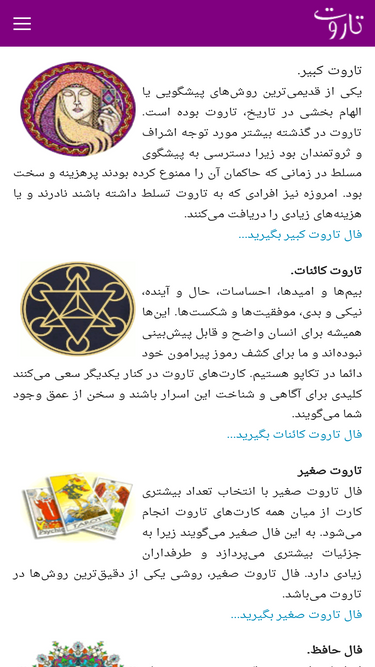 تاروت یکی از پر طرفدارترین فالها از قدیم تا امروز است. این فال به شیوههای متنوعی انجام میشود. مهمترین آنها تاروت کبیر، تاروت صغیر و تاروت کائنات هستند.