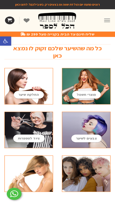 90%רשת חנויות למוצרי טיפוח לשיער וציוד למספרות משלוח חינם בקנייה מעל 300 ש"ח עיצוב שיער טיפוח תוספות מיבשים ומחליקים צבעים