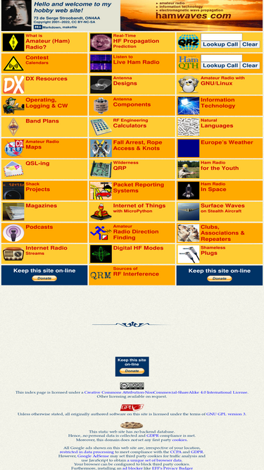 26%indispensable amateur radio information, including: multiband antenna designs, on-line hf propagation prediction, calculators, live ham radio and gnu/linux.