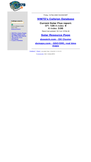 callsign database, solar resource page, ft2000, ft920 resource page, ft100 resource page, amateur radio links, and more.