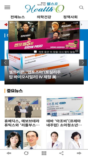 63%의약 전문 인터넷신문, 의약정보, 보건정책, 제약, 학회 등 분야별 기사 제공
