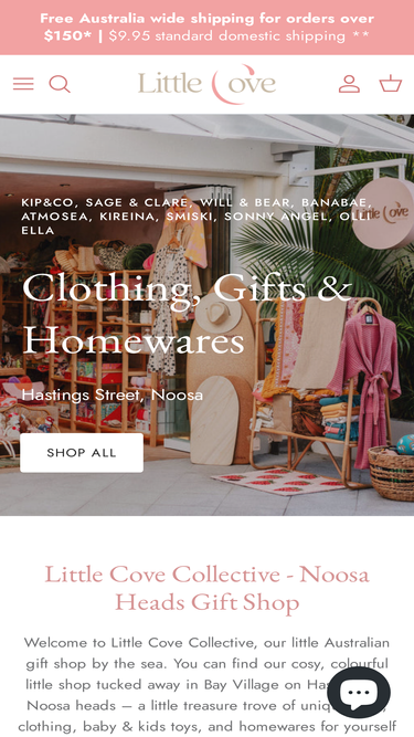 Little Cove Collective is a clothing, homewares & gift shop on Hastings Street, Noosa. It features a selection of Australian brands. Product selection includes clothing, homewares, toys, and beauty products. Brands stocked include Sage & Clare, Kip & Co, Banabae, Sonny Angel, Smiski, MOS, Will & Bear, Kireina and more.